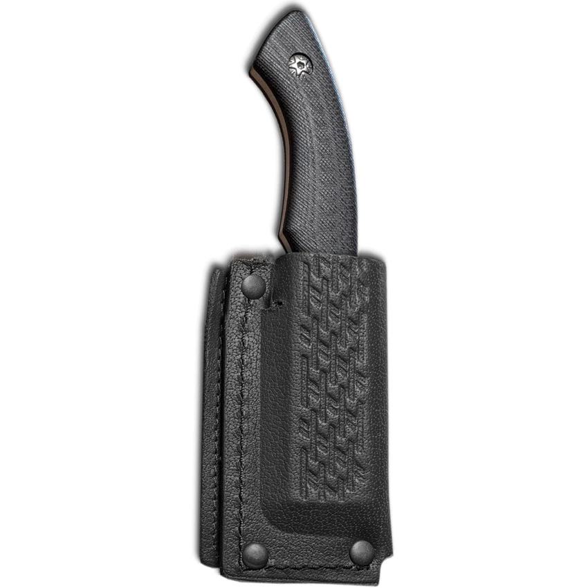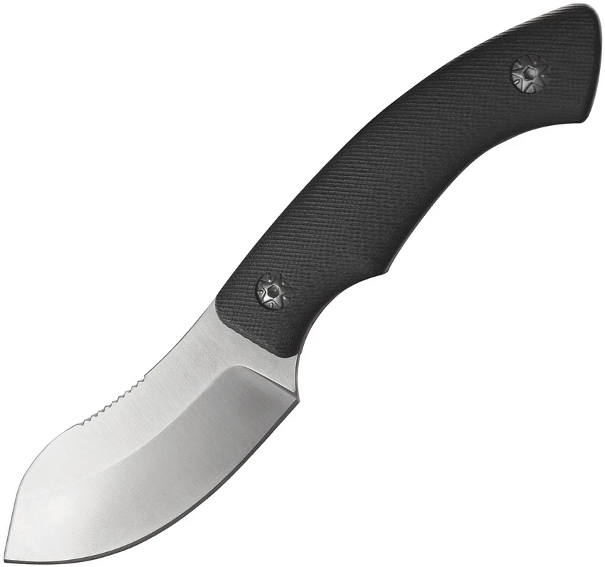 6.5″ (16.51cm) overall. 3″ (7.62cm) satin finish 8Cr13MoV stainless blade. Black G10 handle. Full tang. Black leather belt sheath. Boxed. Made in China.