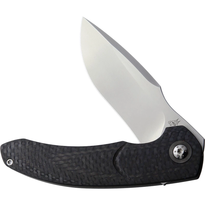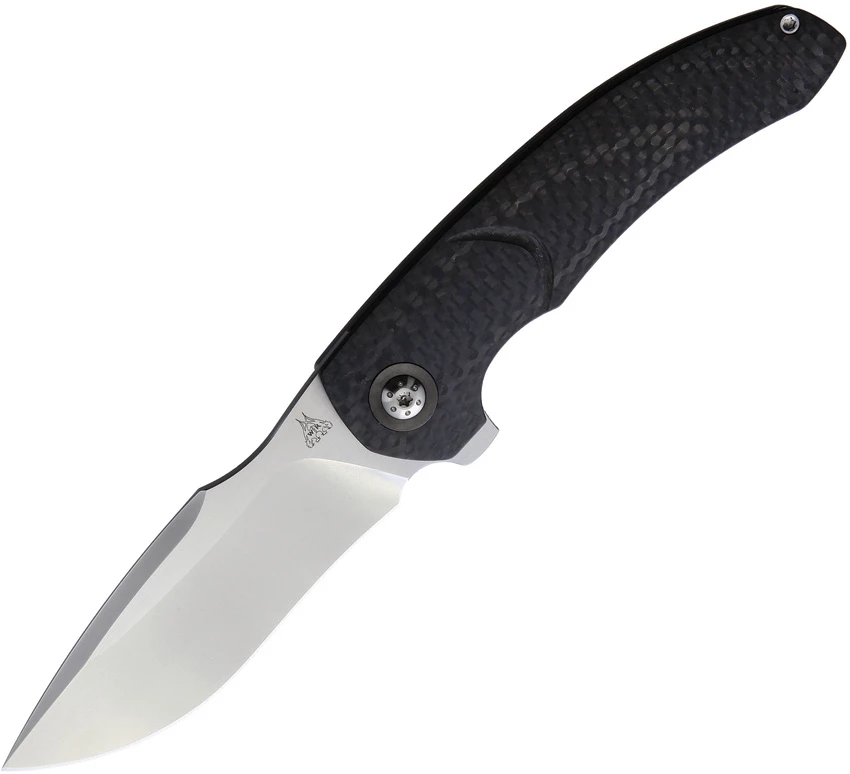 4.25″ (10.8cm) closed. 3.25″ (8.26cm) satin finish Bohler M390 stainless blade. Carbon fiber handle with titanium back handle. Extended tang. Pocket clip. Black synthetic zippered storage case. Boxed. Made in China.