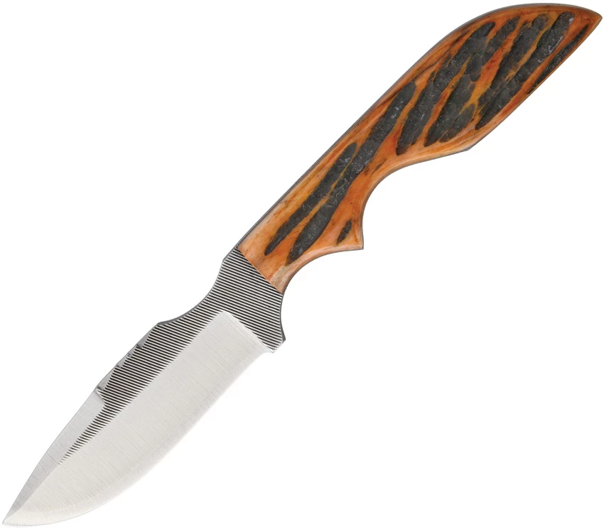 Amber Jigged Bone Handles. 6.5″ overall. 2.75″ blade. Amber jigged bone handle. Full tang. Brown leather belt sheath. Bulk packed. Made in the USA.