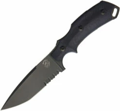 8.5″ overall. 4″ black PVD coated partially serrated Bohler N690 stainless drop point blade. Black G10 handle. Full, extended tang. Lanyard hole. Black Kydex belt sheath. Boxed. Made in Italy.